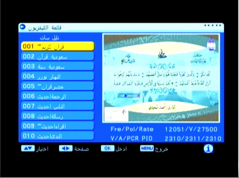 رد: احدث ملف قنوات عربي مسلم لرسيفر ترومان 250 وبريفكس 6800والاشباه معالج c شاشة 4 ارقام1/11/2024