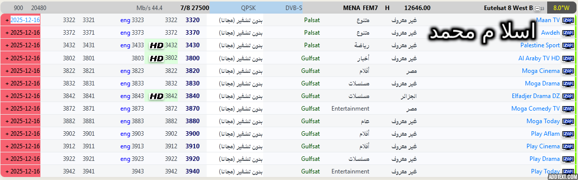 افتراضي رد: أهم آخر التحديثات هذا التردد 12646 الثلاثاء ١٦ ديسمبر ٢٠٢٥ على يوتلسات 8 غرب ب (8W)