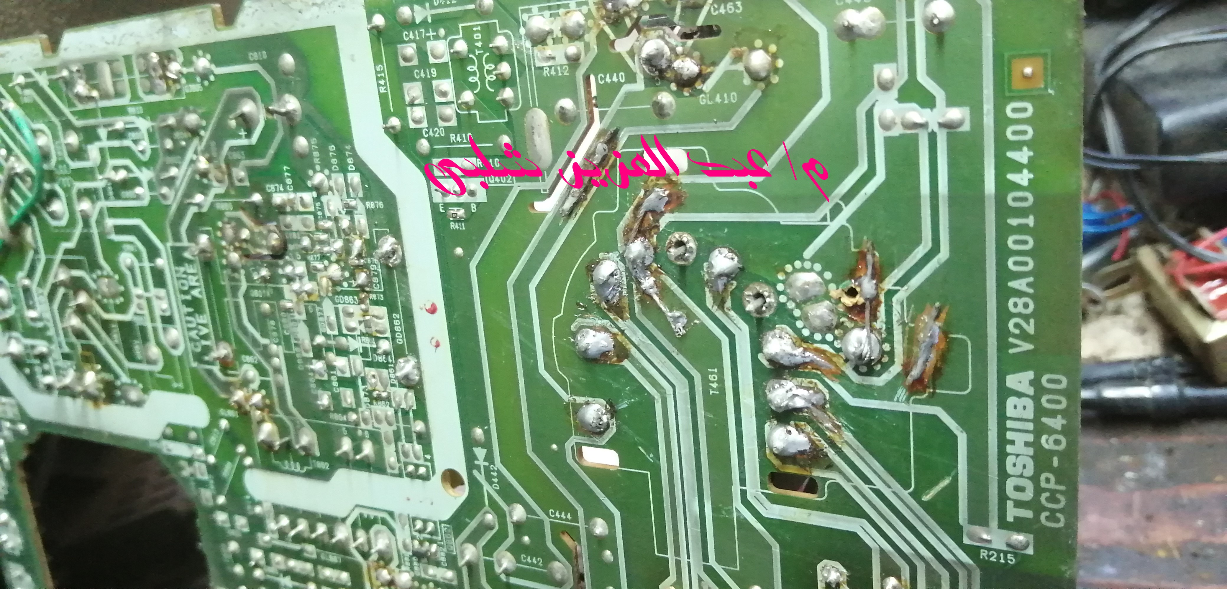 تلفزيون توشيبا 21 بوصة لمبه حمراء ثابته وعند الضغط على البرسات او الريمود للتشغيل اللمبه الحمراء تخفت للحظة وترجع لمبه حمراء ثابته